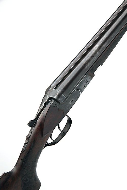 GERMAN 16-BORE BOXLOCK EJECTOR, serial no. 26719, 29 1/2in. nitro barrels (pitted), 2 3/4in. chambers, bored approx. full choke in both, scroll-back treble-grip action, cocking indicator studs, automatic safety, intercepting sears, border and partial scroll engraving, 14 1/4in. pistolgrip stock including 1/2in. extension, sling swivels, weight 6lb. 2oz.
