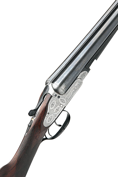 HENRY ATKIN 12-BORE SIDELOCK EJECTOR, serial no. 576, 28in. replacement nitro barrels, the rib engraved 'BARRELS BY GALLYON & SONS. CAMBRIDGE & NORWICH.', 2 1/2in. chambers, bored approx. 1/4 and 3/4 choke, treble-grip action, automatic safety with gold-inlaid 'SAFE' detail, dipped-edge lockplates, bouquet and scroll engraving, bright finish, 17in. stock including 3in. wooden extension, weight 6lb. 9oz., in a Gallyon leather case