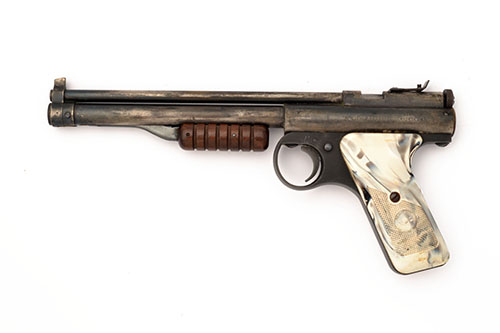 A .22 MULTI-PUMP PNEUMATIC AIR-PISTOL SIGNED BENJAMIN FRANKLIN, MODEL 132 serial no. B115380, (2)