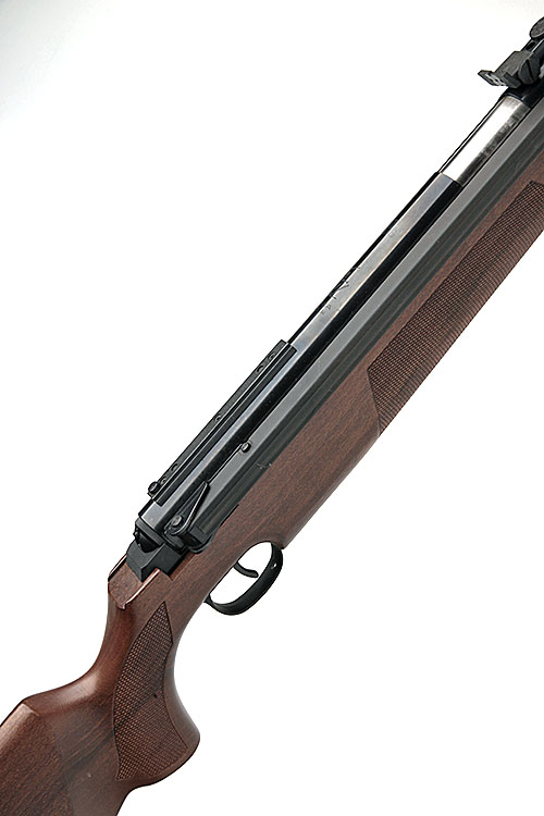 A BOXED SCARCE .22 SIDE-LEVER SEMI-RECOILLESS AIR-RIFLE SIGNED DIANA, MODEL 'AIR-KING', serial no. 04013366, dated for January 1996, with fixed 17in. sighted barrel, sliding breech, floating action, chequered beech half-stock, appearing little used in its maker's carton (losses to carton)