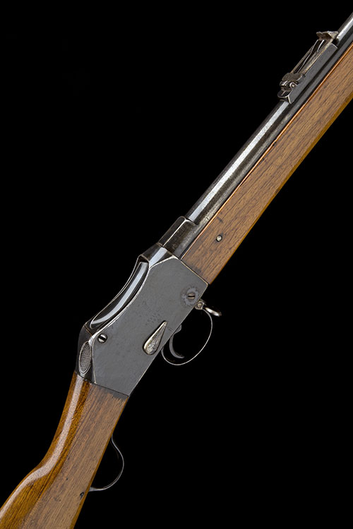 * A .577-450 (M/H) SINGLE-SHOT SERVICE-RIFLE SIGNED ENFIELD, MODEL 'MARTINI-HENRY MKII', no visible serial number, dated for 1874, with 33in. blued barrel (underside of chamber drilled through), block and blade fore-sight, elevating ladder rear-sight, slab sided receiver with dropping load ramp, the side of receiver marked 'ENFIELD' over the date and 'II' with crown and 'VR' device above, walnut butt-stock with iron heel-plate, short underlever, three-quarter length fore-end and iron furniture, missing ramrod, fair amount of possible original finish