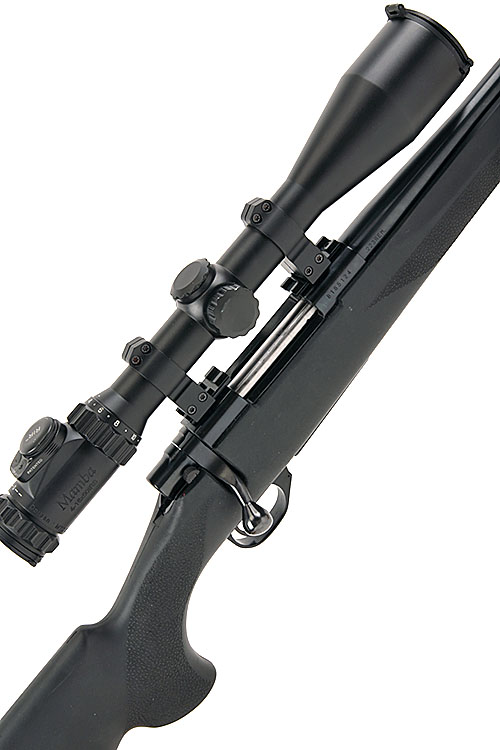 HOWA .223 REM. 'MODEL 1500' BOLT-MAGAZINE SPORTING RIFLE, serial no. B185124, 26in. unsighted nitro barrel (including Wildcat predator 8 sound moderator), mounted with an Optisan Mamba 4-16x50IRS telescopic sight, manual safety. hinged floorplate, 14 1/8in. synthetic pistolgrip stock (including recoil pad, sling eyes