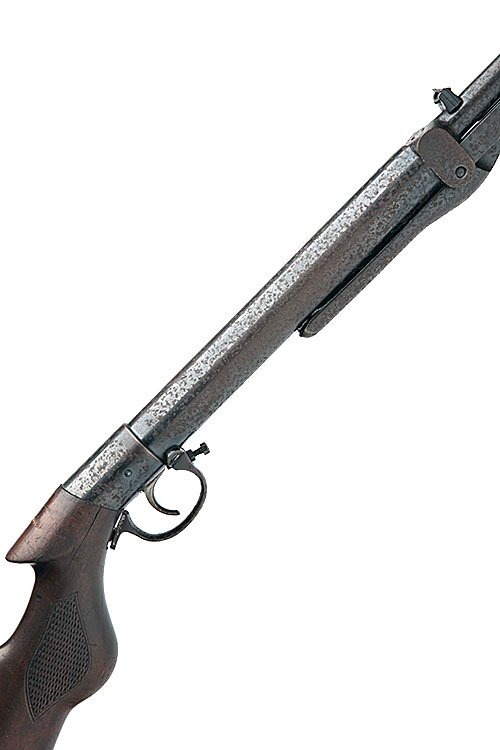 A RARE .22 UNDER-LEVER AIR-RIFLE SIGNED DIANA, MODEL '48', serial no. 10-31, for October 1931, with 18 3/4in. sighted barrel marked 'DIANA LUFT GEWEHR' and 'MADE IN GERMANY', load tap to breech, plain air-chamber and saw-handled walnut butt (some surface corrosion, trigger guard screw sprung, stock split lengthways at wrist)
