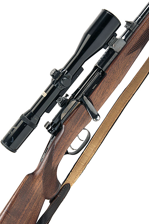 ** STEYR-DAIMLER 7.64mm 'MANNLICHER SCHOENAUER MOD GK' BOLT-MAGAZINE SPORTING RIFLE, serial no. 59903, 24in. nitro barrel, ramp-mounted bead fore-sight, ramp-mounted bead fore-sight, leaf rear-sight, fitted with Geco Germany Variable 2 1/2-8x Dilax telescopic sight with quickly release mounts, manual bolt-safety, tang safety (not functioning, part missing), detachable floorplate, set triggers, butterknife bolt handle, 14 1/8in. well figured pistolgrip stock (including ventilated recoil pad) with cheekpiece, canvas sling