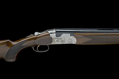 28in. nitro barrels with 6mm ventilated matt top-rib, 3in. chambers, bored approx. imp. cyl. and 1/4 choke, hold-open toplever, automatic safety with integral barrel selector switch, gold-washed trigger, action with acanthus scrollwork surrounding relief engraved game scenes of partridge and duck, bright finish overall, 14 1/4in. pistolgrip stock including 3/8in. rubber buttpad, weight 7lb. 5oz.
