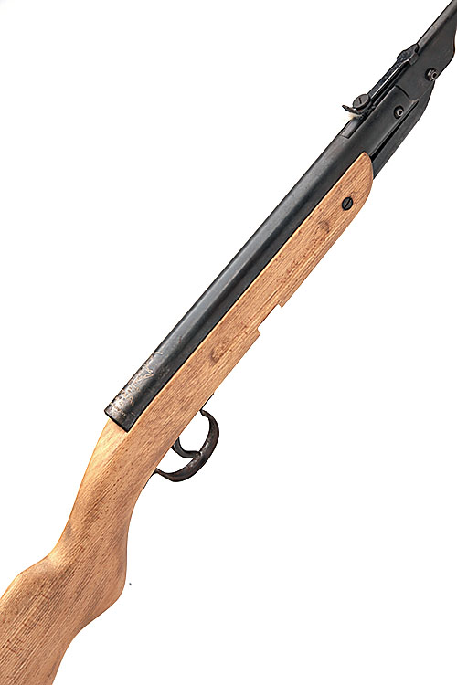 A .177 BREAK-BARREL AIR-RIFLE SIGNED DIANA, MODEL '22', no visible serial number, dated for May 1938, with tin-plate 14 1/4in. barrel, plain air-chamber and beech half stock stripped of finish