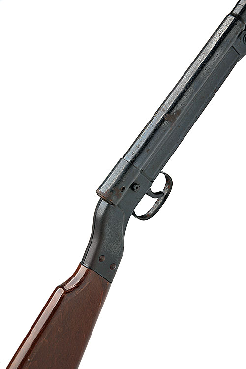A .177 BREAK-BARREL TIN-PLATE AIR-RIFLE SIGNED ORIGINAL, MODEL '15', no visible serial number, with 12in. blued barrel, plain air-chamber and slab-sided beech butt-stock, speckled corrosion to finish