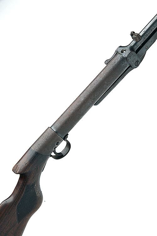 A .177 UNDER-LEVER AIR-RIFLE SIGNED BSA, MODEL 'LIGHT PATTERN', serial no. L17976, for 1922, with 17in. sighted barrel, plain air-chamber and saw-gripped walnut butt-stock, push button under-lever, light surface rust throughout