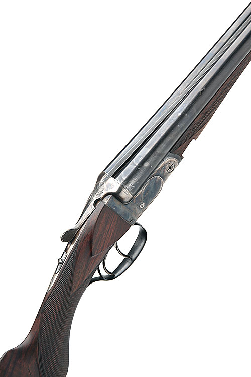 VERNEY CARRON 16-BORE BOXLOCK NON-EJECTOR, serial no. V274, 27 1/2in. nitro barrels, 2 1/2in. chambers, bored approx. 1/2 and 3/4 choke, treble-grip action, manual safety, border engraving, retaining some original colour-hardening and finish, 14 5/8in. semi-pistolgrip stock including 1/2in. wooden extension, sling swivels, weight 5lb. 12oz.