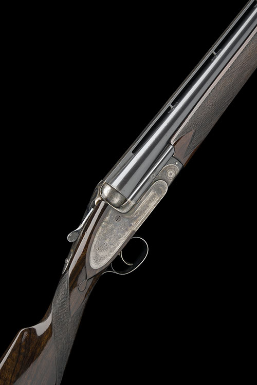 Provenance: The makers have kindly confirmed that the gun was completed on 26th October 1928 as 'a 12-bore (2 3/4in.) single-barrelled hammerless ejector trap gun', choked to pattern 70% at 40 yards, Lyman sights, manual safety, 'modified forend' for Von Lengerke & Detmold