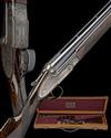 30in. Whitworth-steel nitro barrel with raised ventilated tapering matt top-rib, high visibility bead fore-sight and ivorine intermediate bead sight, the breech end engraved 'J. PURDEY & SONS. AUDLEY HOUSE. SOUTH AUDLEY STREET. LONDON.' and 'MADE OF SIR JOSEPH WHITWORTH'S FLUID PRESSED STEEL', 2 3/4in. chamber, bored approx. 3/4 choke, treble-grip action with removable striker disc, manual safety with gold-inlaid 'SAFE' detail, cocking-indicator, best fine acanthus scroll engraving with floral bouquets, the right side with decorative sideplate to match, 14 5/8in. well-figured stock including 1 1/8in. rubber recoil pad, beavertail fore-end with small plug, weight 7lb. 13oz., in its brass-cornered oak and leather case