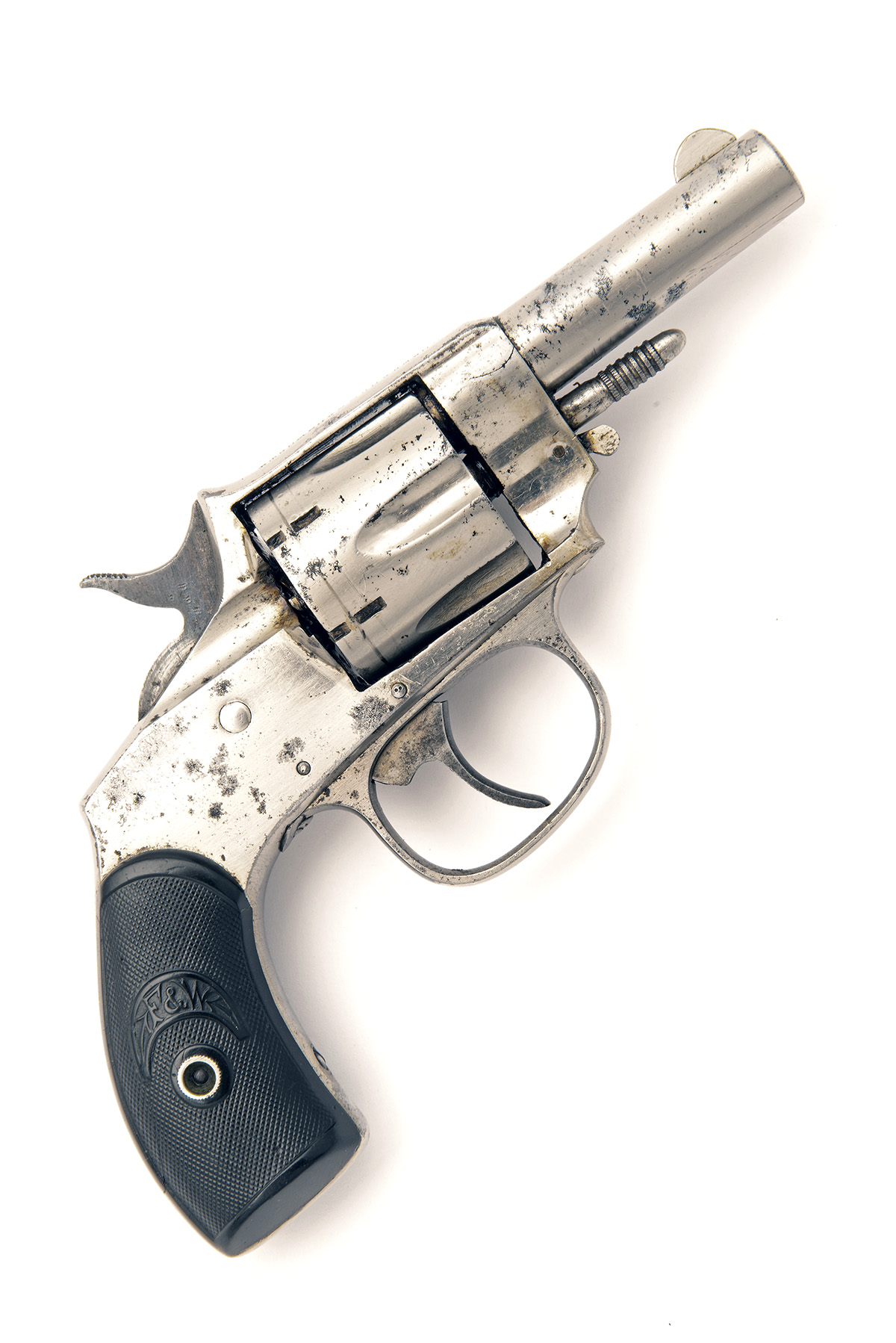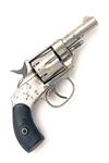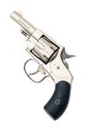 circa 1880, with round nickel-plated 2 1/2in. barrel, the left hand side marked 'PATD JULY 24. 1877', crescent fore-sight, sighting notch to the rear of top-strap, the strap signed 'FOREHAND & WADSWORTH DOUBLE ACTION No.32 WORCESTER. MASS', fluted and plated cylinder, plated frame with load cut-out on right hand side, colour hardened hammer, plated trigger and chequered gutta-percha grips embossed with the recumbent crescent Forehand & Wadsworth trademark, some loss to plating