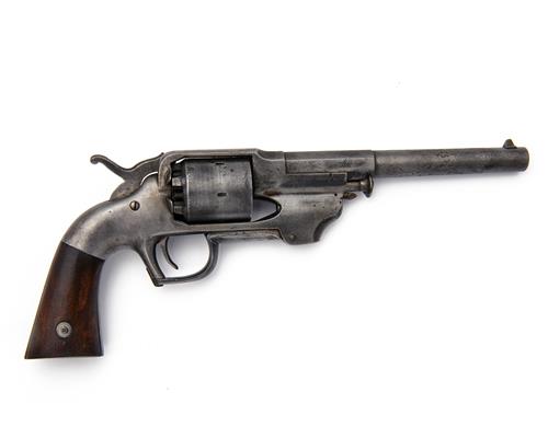 for 1861-62, with 7 1/2in. two-stage barrel signed 'ALLEN & WHEELOCK WORCESTER MASS U.S' and with patents to September '7' (markings rubbed), plain cylinder, plain solid frame with frontal cylinder release and central hammer, smooth walnut grips, hinged rammer forming the trigger-guard, minimal traces of finish, some staining and frosting