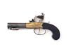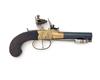 A 36-BORE FLINTLOCK BRASS-BODIED TRAVELLING PISTOL WITH SPRUNG BAYONET, no visible serial number,