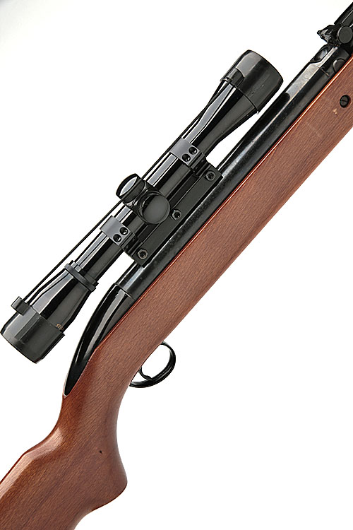 A .22 UNDER-LEVER AIR-RIFLE SIGNED BSA, MODEL 'AIRSPORTER', serial no. GL33881, with blued 18 1/2in. barrel, blued air-chamber, alloy manual tap handle, beech half-stock and concealed blued under-lever, complete with a 'NIKKO STERLING SILVER CROWN' 4x32 telescopic sight and one-piece mount