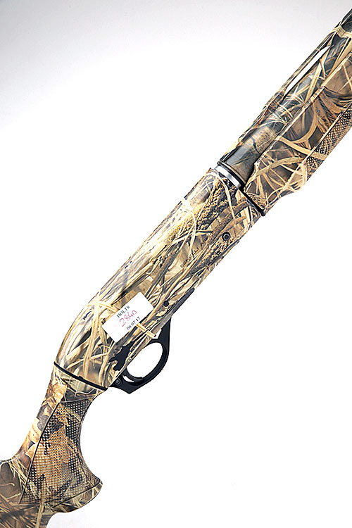A LEFT-HANDED BENELLI 12-BORE (3IN.) 'M2' SEMI-AUTO SHOTGUN, serial no. M648588, restricted magazine, 28in. nitro barrel with 8mm ventilated matt rib, 3in. chamber, multichoke (with spares), push-button safety, 14in. synthetic pistolgrip stock, the whole with camouflage effect finish, in its makers ABS case with manual