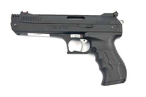 A .177 SINGLE-STROKE PNEUMATIC AIR-PISTOL SIGNED WEIHRAUCH, MODEL 'HW40', serial no. 539768, with 7in. barrel mounted inside a kevlar plastic shroud, integral receiver and frame, abs plastic grips, the whole appearing little used