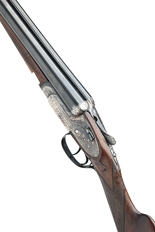 AYA 12-BORE 'MODEL NO.2' HAND-DETACHABLE SIDELOCK EJECTOR, serial no. 454972, 26in. nitro barrels, 2 3/4in. chambers, bored approx. true cyl. and 1/4 choke, removable striker discs, automatic safety, hand detachable lockplates, gold-inlaid cocking indicators, articulated front trigger, rolled-edge triggerguard, 14 3/4in. stock including 1/2in. ventilated rubber recoil pad, weight 6lb. 7oz.