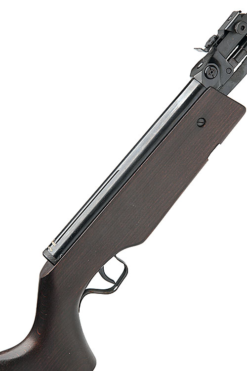 A .22 UNDER-LEVER AIR-RIFLE SIGNED RELUM, MODEL 'TORNADO LG15', serial no. 04229, with blued, sighted 19in. barrel, loading tap at breech, blued air-chamber and dark beechwood angular stock