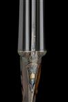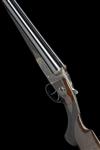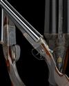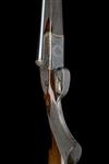 27in. nitro barrels, the rib engraved 'WESTLEY RICHARDS. 23 CONDUIT ST. LONDON. GUN MAKERS BY APPOINTMENT TO HM THE KING', and gold-inlaid at the breech end '2 INCH CARTRIDGES. 12. 1.', 2in. chambers, bored approx. 3/4 and full choke, treble-grip action, Westley Richards patent toplever gold-inlaid with an Indian crown, manual side safety with gold-inlaid 'SAFE' detail, the fences deeply carved in high relief with scrolling floral and acanthus designs on a finely matted background, fine acanthus scroll engraving, the triggerguard with a pointer on point, retaining much original colour-hardening and finish, 15 1/8in. figured pistolgrip stock with horn pistolgrip-cap, wooden insert at comb and 7/8in. wooden extension, fore-end with Deeley & Edge patent release catch and horn finial, weight 5lb. 7oz., in a lightweight leather case