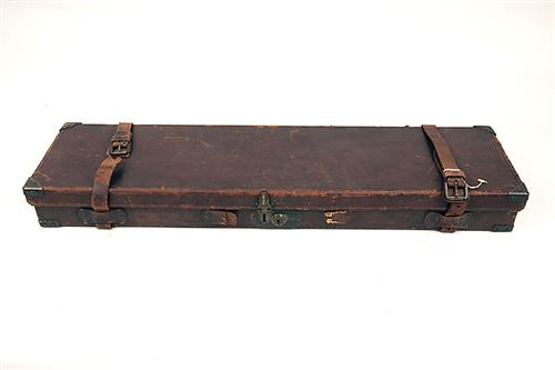 AN ARMSTRONG BRASS-CORNERED LEATHER SINGLE GUNCASE,