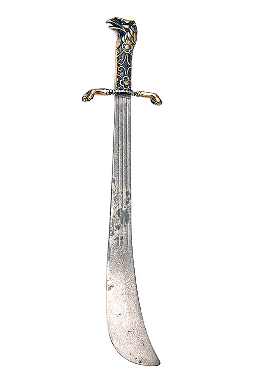 A COMPOSITE CUTLASS, the blade possibly modified from a machete fitted to a cast brass French-style hilt with 'chicken-head' pommel, no scabbard