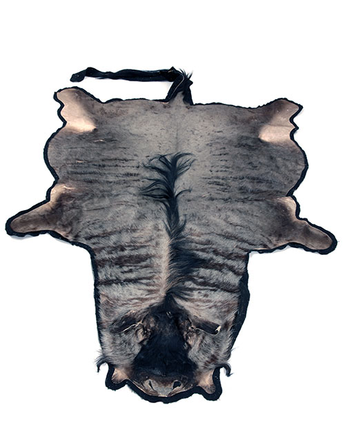 A RUG-MOUNT OF A BLUE WILDEBEEST, lined with black baize, measuring approx. 122in. (nose to tail)