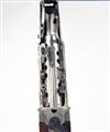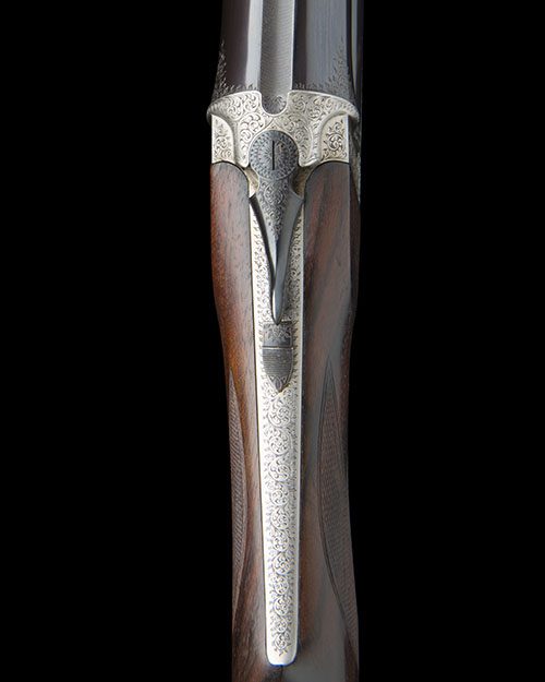 26 3/4in. Boehler Antinit-steel nitro barrel with raised ventilated file-cut top-rib, breech engraved 'COSMI - BREV." ANCONA - ITALY', and 'Mod Lusso' in script, 2 3/4in. chamber, bored approx. 3/4 choke, manual safety, fine acanthus scroll engraving with floral bouquets, the sides and underside of the action finely engraved with game scenes of pointer and partridge, setter and mallard and a brace of rising pheasant, the top strap signed 'M.A. FABBRIZIOLI INC.', bright finish overall, 14in. well-figured pistolgrip stock (minor crack at hand) including 1/2in. rubber recoil pad, weight 8lb. 4oz., in a Cosmi canvas slip