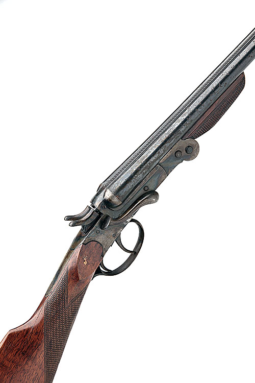 BELGIAN .410 DOUBLE-BARRELLED SIDELEVER FOLDING HAMMERGUN, serial no. 564, 27 1/2in. nitro barrels, 2 1/2in. chambers, rebounding hammers, action retaining some colour-hardening and finish, 14 1/4in. straight-hand stock including steel buttplate