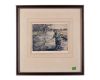 A GLAZED FRAMED LIMITED EDITION PRINT OF A WADING FLY FISHERMAN NETTING HIS CATCH