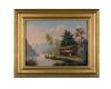 A GLAZED FRAMED LIMITED EDITION PRINT OF A WADING FLY FISHERMAN NETTING HIS CATCH together with an original oil on board