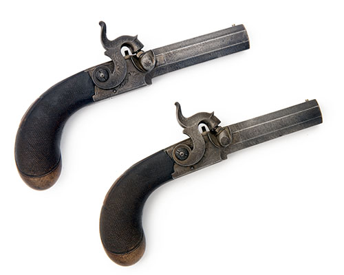 A PAIR OF 46-BORE PERCUSSION TURN-OFF SIDE-HAMMER POCKET-PISTOLS, no visible serial number,