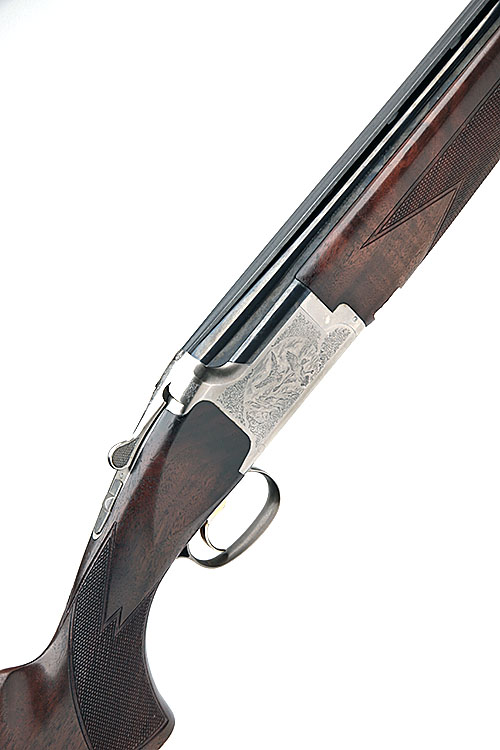 BROWNING 12-BORE 'MOD. GTI SU' SINGLE-TRIGGER OVER AND UNDER EJECTOR, serial no. 54470NW, 28in. nitro barrels with ventilated mid-rib and 12mm ventilated matt top-rib, 2 3/4in. chambers, multichokes (with spares), hold-open toplever, manual safety with integral barrel selector switch, gold-washed adjustable trigger, acanthus scroll engraving surrounding game scene vignettes, 14 3/4in. pistolgrip stock including buttplate, weight 7lb. 11oz.