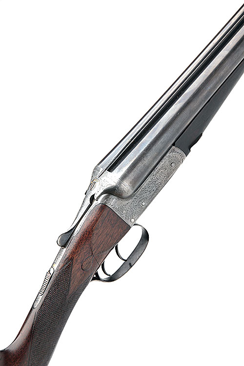 THOMAS PRYSE 12-BORE BOXLOCK EJECTOR, n.v.s.n., 30in. nitro barrels, 2 1/2in. chambers, bored approx. 1/4 and full choke, treble-grip action, automatic safety with gold-inlaid 'SAFE' detail, border and acanthus scroll engraving, 15in. stock including 1/2in. rubber recoil pad, weight 6lb. 11oz.
