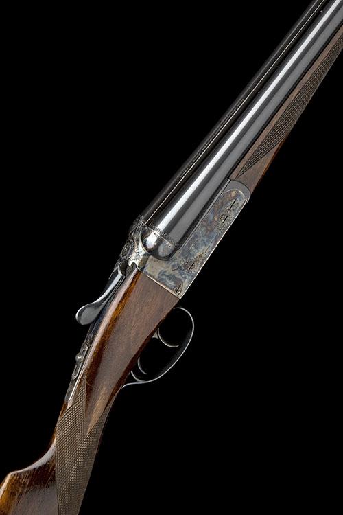 26in. nitro chopperlump barrels, 2 3/4in. chambers, bored approx. imp. cyl. and 1/4 choke, removable striker discs, automatic safety, border engraving, retaining much original colour-hardening and finish, 12in. stock, weight 4lb. 13oz.