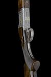 28in. nitro barrels with 7mm ventilated matt top-rib, 3in. chambers, bored approx. 1/4 and imp. cyl. choke, hold-open toplever, manual safety with integral barrel selector switch, stippled and scroll engraved fences, bold acanthus engraving on a matt background with central gold-highlighted scenes of pheasant and duck in flight, the underside with a lone partridge, signed 'L. ERNST', bright finish, 14 3/4in. figured pistogrip stock with beaded carved bordering to the chequering, fluted drop points, 1/2in. rubber recoil pad, weight 7lb. 12oz.