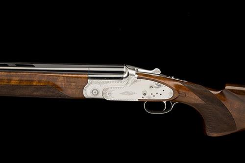 30in. nitro barrels proofed for 3in. magnum steel shot, tapered raised ventilated matt top-rib, 3in. chambers, multichokes (with spares), hold-open toplever, manual safety, hand-detachable lockplates, cocking-indicators, acanthus scroll engraving, bright finish overall, 15in. figured pistolgrip stock including 1/2in. rubber recoil pad, weight 8lb. 6oz.