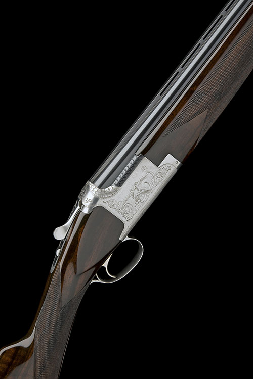 27 1/2in. nitro barrels with 6mm ventilated matt top-rib, 2 3/4in. chambers, multichokes (with spares), hold-open toplever, manual safety with integral barrel selector switch, acanthus scroll engraving with duck and pheasant, signed 'P. LALLEMAND', brushed finish, 14 3/8in. roachbelly stock including 5/8in. rubber recoil pad, weight 7lb. 2oz., in a case