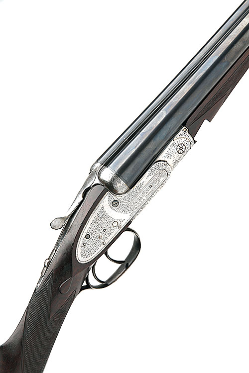 COGSWELL & HARRISON 12-BORE SIDELOCK EJECTOR, serial no. 56546, 26in. nitro barrels, 2 3/4in. chambers, bored approx. 1/4 and 1/2 choke, automatic safety, border and acanthus scroll engraving, bright finish, 14in. stock, weight 6lb. 8oz.