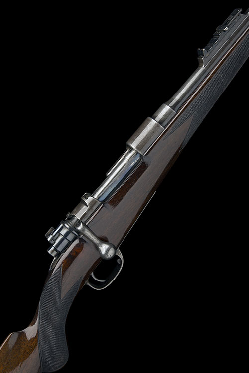 Provenance: The makers have kindly confirmed that this rifle was completed on 6th August 1906 for Lord Windsor. The records have it as a 'Mauser sporting best, action no. 63, 25in. barrel standard 2v +2 leaves and tang to 1000'