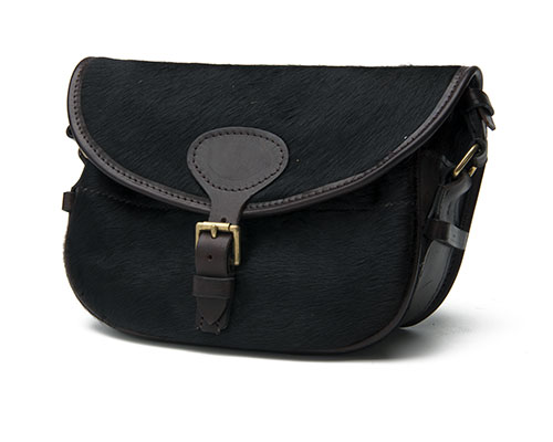 A RARE SABLE ANTELOPE SKIN AND LEATHER SUEDE-LINED LARGE CARTRIDGE BAG,