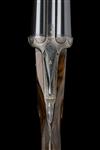 29in. Whitworth-steel nitro barrels (slightly loose on action), rib engraved 'JAMES WOODWARD & SONS, 64 ST. JAMES'S STREET. LONDON. S.W. MADE OF SIR JOSEPH WHITWORTH'S FLUID PRESSED STEEL', and gold-inlaid '3' at the breech end, 2 1/2in. chambers, bored approx. imp. cyl. and 1/4 choke, arcaded fences with side-clips, removable striker discs, toplever gold-inlaid '3', automatic safety with gold-inlaid 'SAFE' details, protruding tumbler pivots with gold-inlaid cocking-indicators, profusely engraved with fine acanthus scrollwork, retaining some renewed colour-hardening and finish, 15 1/2in. well-figured replacement stock (crack to left underhorn) including 1in. rubber recoil pad, fore-end wood with light repairs, weight 6lb. 12oz., in its brass-cornered oak and leather case