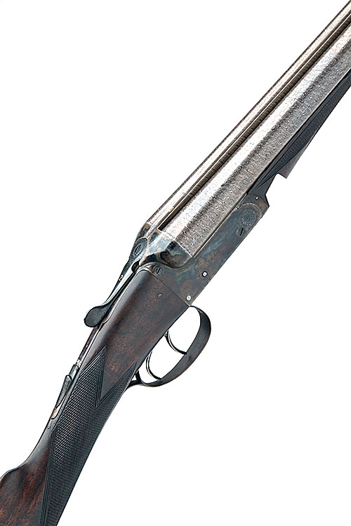 S. SMALLWOOD 16-BORE BOXLOCK EJECTOR, serial no. 1578, 28in. nitro reproved damascus barrels, the rib engraved 'S. SMALLWOOD. SHREWSBURY.' and gold-inlaid '2', 2 1/2in. chambers, bored approx. imp. cyl. and 1/2 choke, treble-grip action, intercepting sears, automatic safety, border engraving, retaining much colour-hardening and finish, 14 3/4in. stock (pinned at head) including 1in. rubber recoil pad, weight 5lb. 14oz.