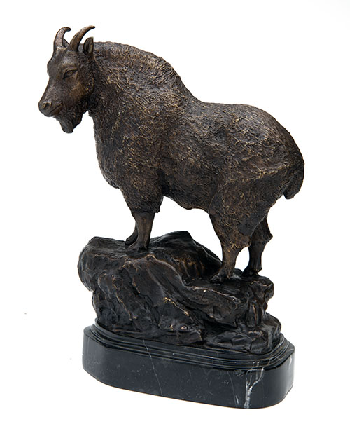 A BRONZE SCULPTURE OF A MOUNTAIN GOAT,