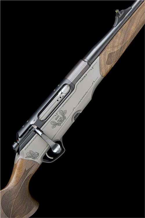 22 1/4in. cold-forged steel nitro barrel with block-mounted adjustable open sights with fibre optic inserts, ramp-mounted sprung high visibility fore-sight, titanium finish action with border and oak leaf detailing, detachable box magazine, set trigger, 14 1/4in. pistolgrip stock with cheekpiece, hogsback comb, quickly-detachable sling swivels and including 1/2in. rubber recoil pad, weight 7lb. 5oz., in its padded fabric 'Integrale' case with paperwork and original cardboard carton