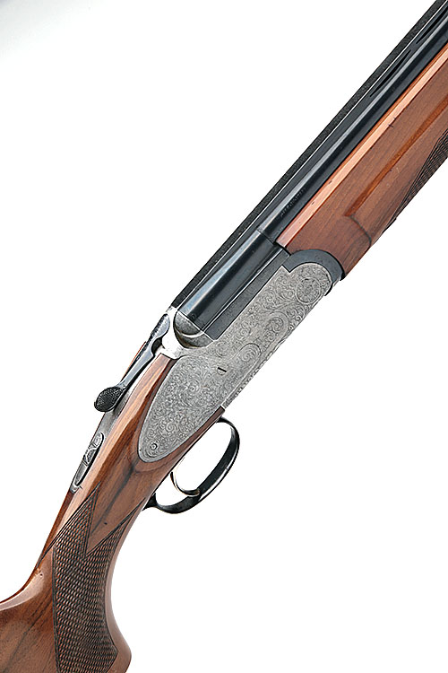 EMILIO RIZZINI 12-BORE SIDEPLATED OVER AND UNDER EJECTOR, serial no. 34817, 26in. nitro barrels with ventilated mid-rib and 12mm ventilated matt top-rib, 2 3/4in. chambers, bored approx. open choke, hold-open toplever, manual safety with integral barrel selector switch, 14in. pistolgrip stock including 3/4in. ventilated rubber recoil pad