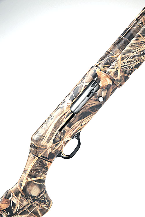 P. BERETTA 12-BORE 'A304 SILVER LARK' SEMI-AUTO SHOTGUN, serial no. U62613E, restricted magazine, 28in. nitro barrel with with integral 21 1/2in. sound moderator, 2 3/4in. chamber, push-button safety, gold-washed trigger, action engraved with bursts of acanthus scroll, 14 1/2in. synthetic pistolgrip stock including recoil pad, the whole with camouflage effect finish, weight 8lb. 7oz.