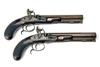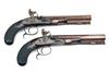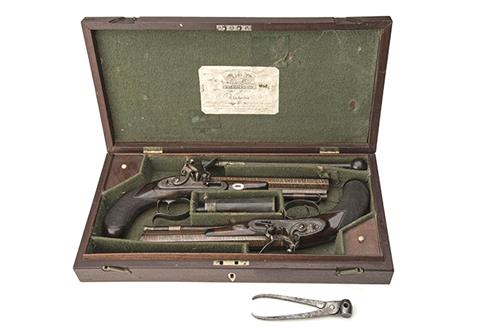 A GOOD CASED PAIR OF 40-BORE FLINTLOCK OFFICER'S OR TARGET-PISTOLS, no visible serial numbers,