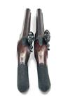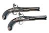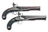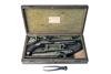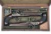 A GOOD CASED PAIR OF 18-BORE FLINTLOCK OFFICER'S-PISTOLS, no visible serial numbers,