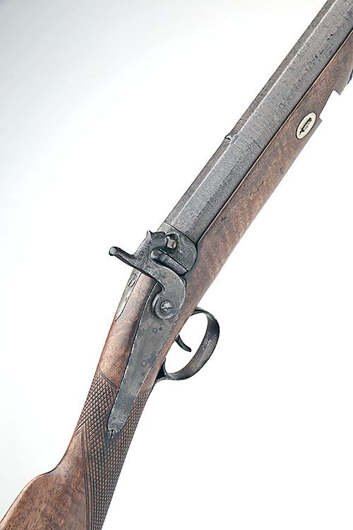 A 14-BORE PERCUSSION BALL-GUN, UNSIGNED, no visible serial number,